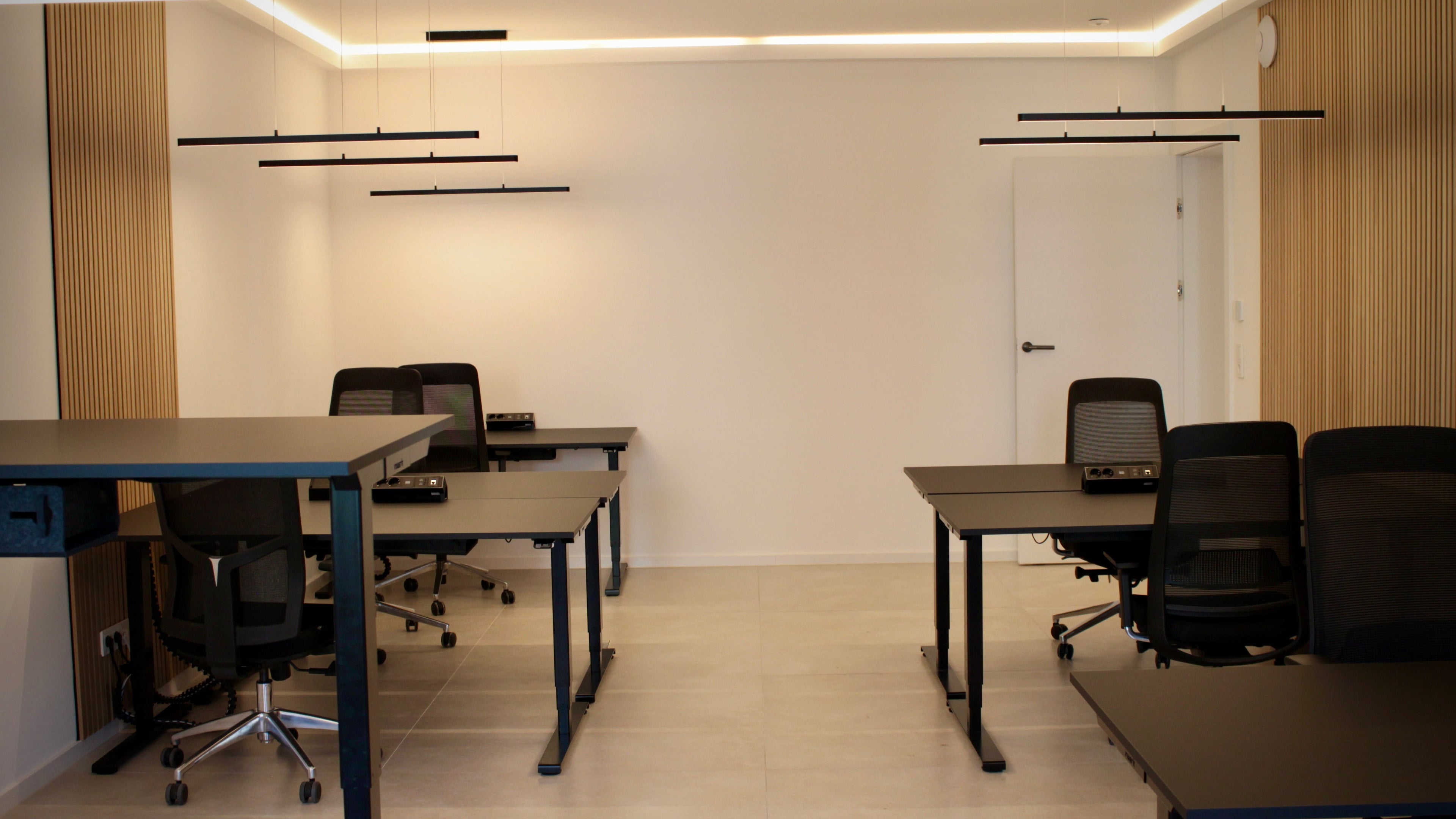 Das gilt nicht nur für deine Arbeitszeiten: bei uns kannst du vom clean desk bis zum voll ausgestatteten Büroarbeitsplatz alles buchen. Unsere Arbeitsplätze sind alle mit extragroßen elektrisch höhenverstellbaren Tischen und einem ergonomischen Bürostuhl ausgestattet. Strom und Netzanschlüsse inkl. USB-Ports findest du direkt an der Tischplatte.